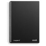 Mål: 177 x 138 x 24 mm. Layout: Dag/side. Højformat. Timeinddeling 8-20. Kalendarium: 2026-01-01 – 2026-12-31. Omslag: PP-plast. Spiralbundet. Detaljer: Plastlomme. Indhold: Månedsregister. Sideantal: 404 + 12 pl. Miljøoplysninger: FSC®. Varemærke: Mayland.