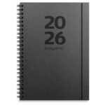 Format: A5. Mål: 211 x 159 x 12 mm. Layout: Uge/opslag. Tværformat. Kalendarium: 2026-01-01 – 2026-12-31. Omslag: Genbrugskarton. Spiralbundet. Detaljer: Elastik. Plastlomme. Indhold: Månedsoversigter. Sideantal: 128 + 10-pl. Miljøoplysninger: FSC®. Varemærke: Mayland.