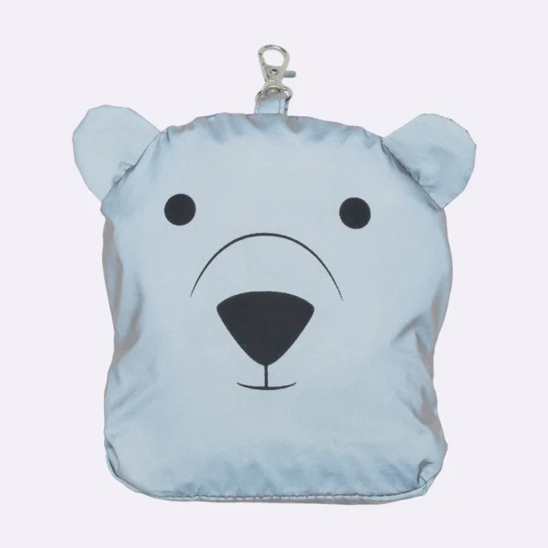 Endurskinsvestur við einklum lási framman. Kann pakkast saman til eina bjørn og heingjast á ryggsekkin sum refleks.