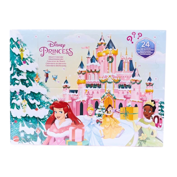 Hátíðarhald høgtíðina við hesum Disney Prinsessu adventskalendaranum! Fjepparir av filmunum fara at elska at telja niður við 24 døgum við stuttligum yvirraskilsum, við íblástri frá teirra yndis Disney filmum. Gávurnar í kalendaranum eru 4 smáar dukkur í jólamóta og 22 stk tilhoyr, samt ein vetrarmynd við eyka ‘pop-out’ spælistykkjum úr pakkanum.