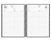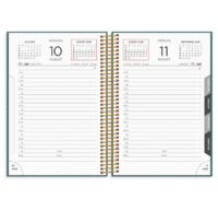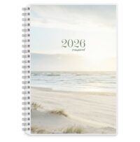 Mål: 129 x 101 x 26 mm. Layout: Dag/side. Højformat. Timeinddeling 8-18. Kalendarium: 2026-01-01 – 2026-12-31. Omslag: Genbrugskarton. Spiralbundet. Indhold: Månedsoversigter. Sideantal: 436 + 14 pl. Miljøoplysninger: FSC®. Varemærke: Mayland.