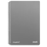 Mål: 177 x 132 x 19 mm. Layout: Uge/opslag. Tværformat. Kalendarium: 2026-01-01 – 2026-12-31. Omslag: PP-plast. Spiralbundet. Detaljer: Papirlomme. Indhold: Linjerede venstresider. Sideantal: 134 + 12 pl. Miljøoplysninger: FSC®. Varemærke: Mayland.